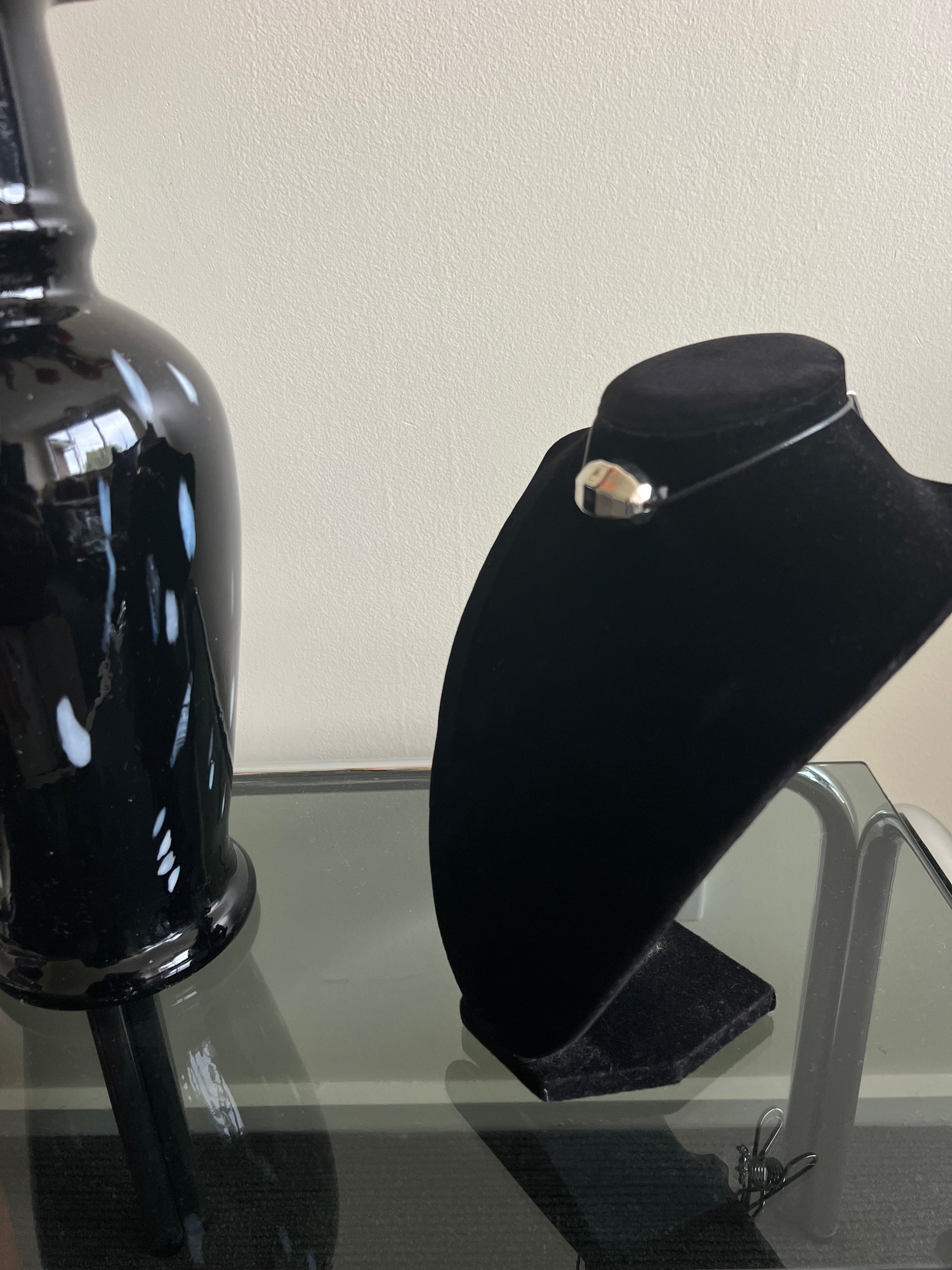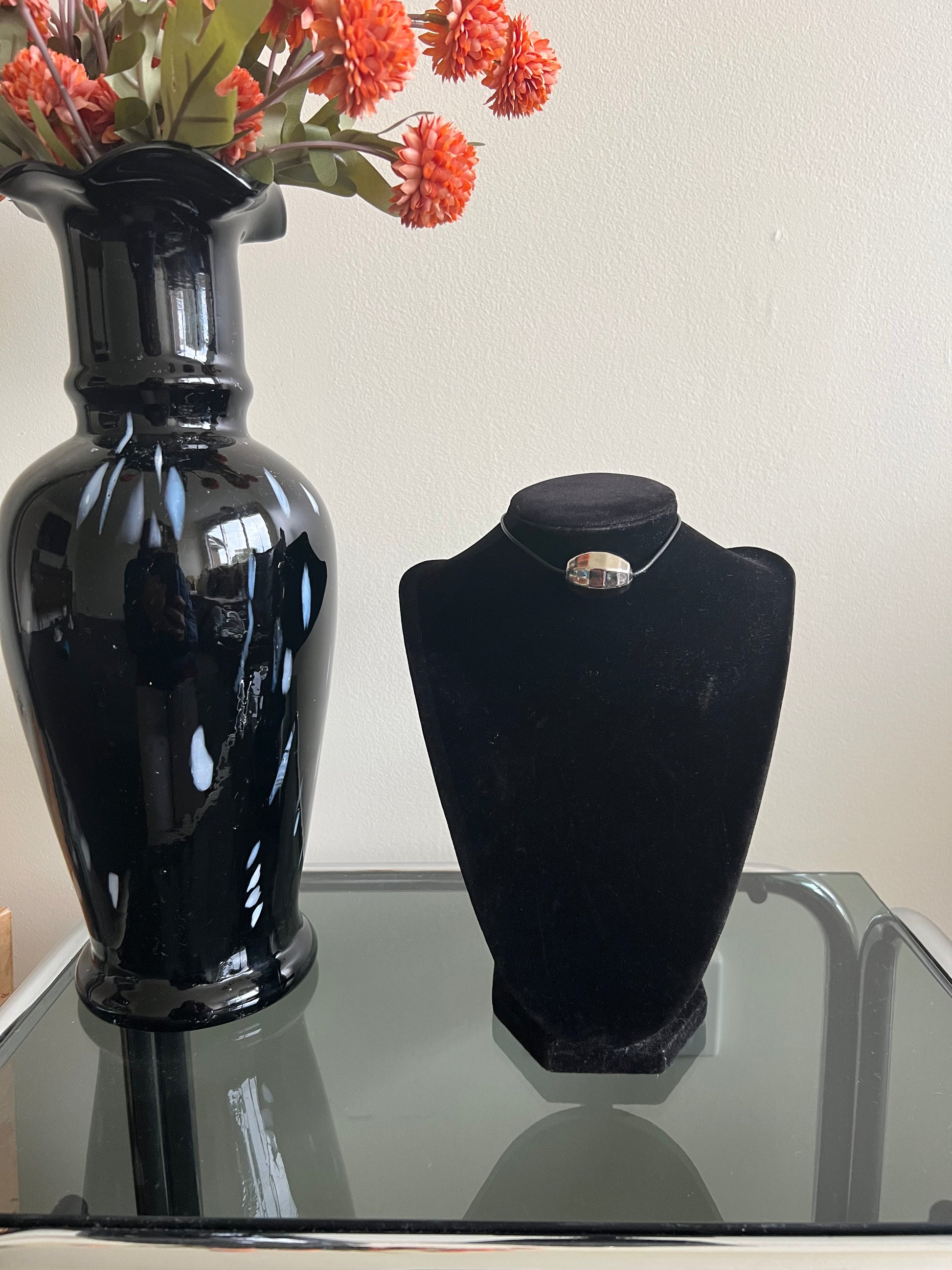 MATERIALS: black cord and a silver large enamel bead with stainless steel findings