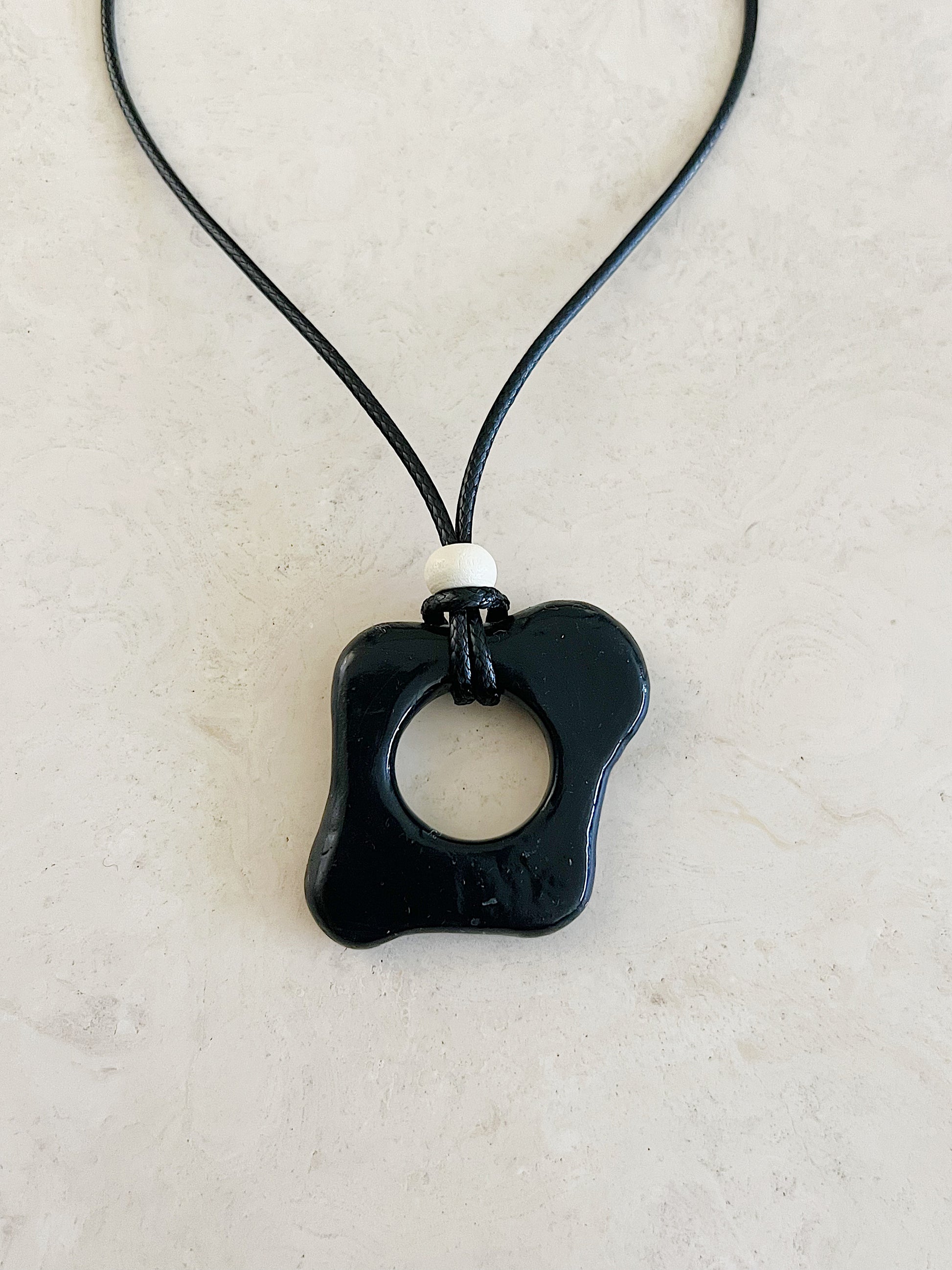 A fluid black pendant with softened edges, shaped to look like it’s shifting. Melt captures transformation, imperfect and alive.